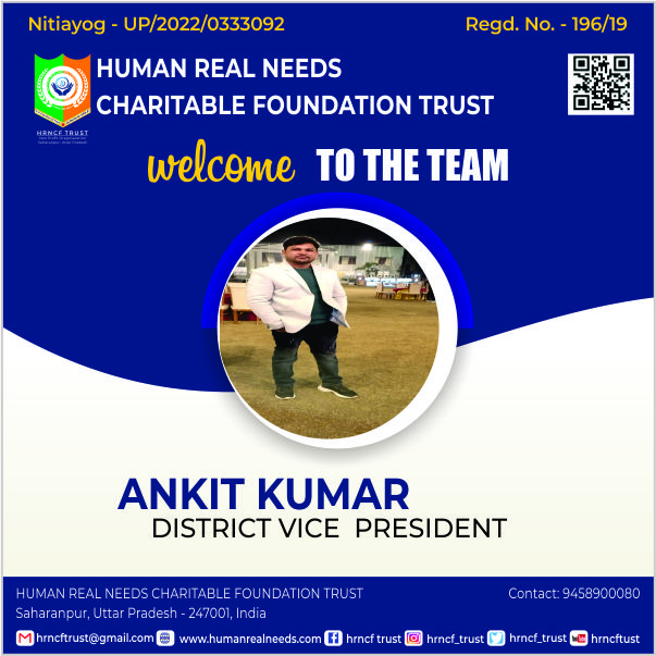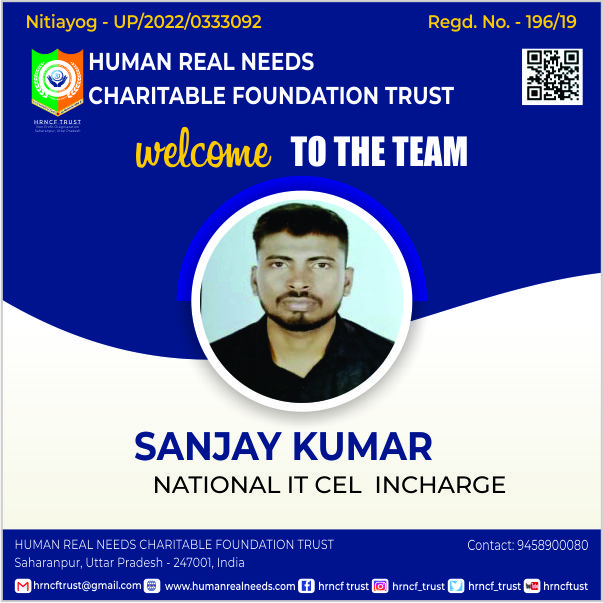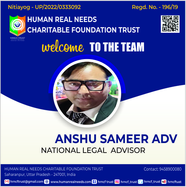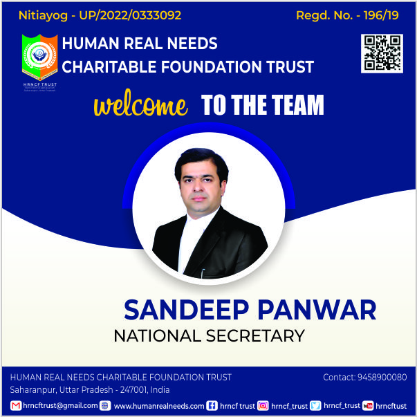 Hrncf Trust takes a privilege to welcome you in its world. We were established with the sole object to bring social changes and reforms in this discriminative society. Being an Indian citizen 'we the people' of Hrncf Trust family recognize our responsibilities towards society and eagerly involve in brining reformation in the society which is still ill from social maladies. We exist in the society to encounter the various problems and conflicts of the society which is pushing us back from the way of development. We are eager to provide you social security services; social education so that every citizen of the country can avail its basic fundamental rights and can fight against the hindrance which comes in the way of their success. In addition, we are as the warrior social service provider in India. Hrncf Trust is an initiative towards the creation of a society free from crime, corruption and unjust. In other words, Hrncf Trust isan institution that strives to ensure well-being of all the citizens through ensuring access to welfare schemes to the needy and ensuring rights of all its citizens without any discrimination. I am proud to say that our mission is successfully running under the guidance of Good Legal Adviser, Honest Government/Hrncf Trust Officers, Talented Journalist, Social Workers and all Citizen of India "who is known for his allegiance and devotion towards social responsibilities"