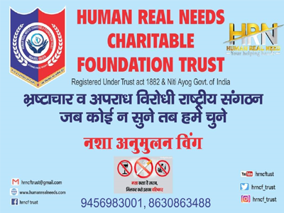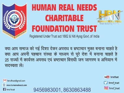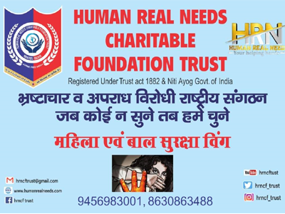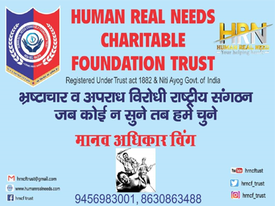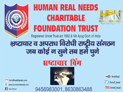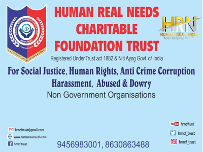 Human Real Needs Charitable Foundation Trust is a name of Crime and Corruption killer team, operating across India with support of good officers and powerful legal team. It is a Non Government Organization (NGO) that operates independently and playing a significant role in the Service of our Country and to make our Society crime free and safe.